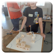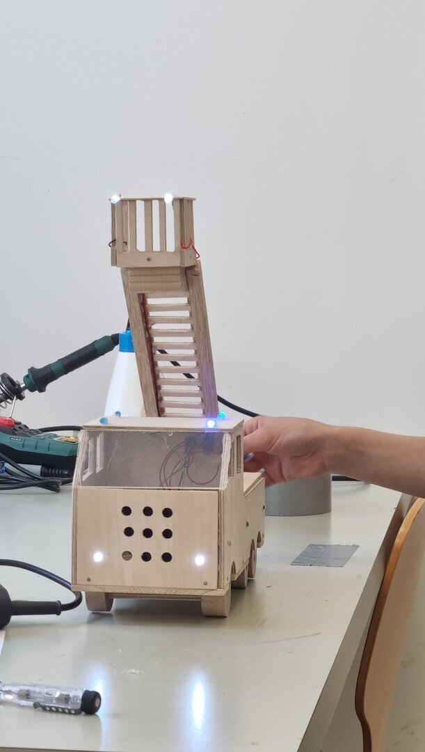 Eelektronische Projekte: Ein Feuerwehrauto aus Holz mit Blaulicht und Sirene, Kleine Stadt mit LED-Beleuchtung, die Wunderlampe – eine Glühbirne lässt sich auspusten und mit dem Feuerzeug anzünden, LED Lampen mit Einschaltautomatik.